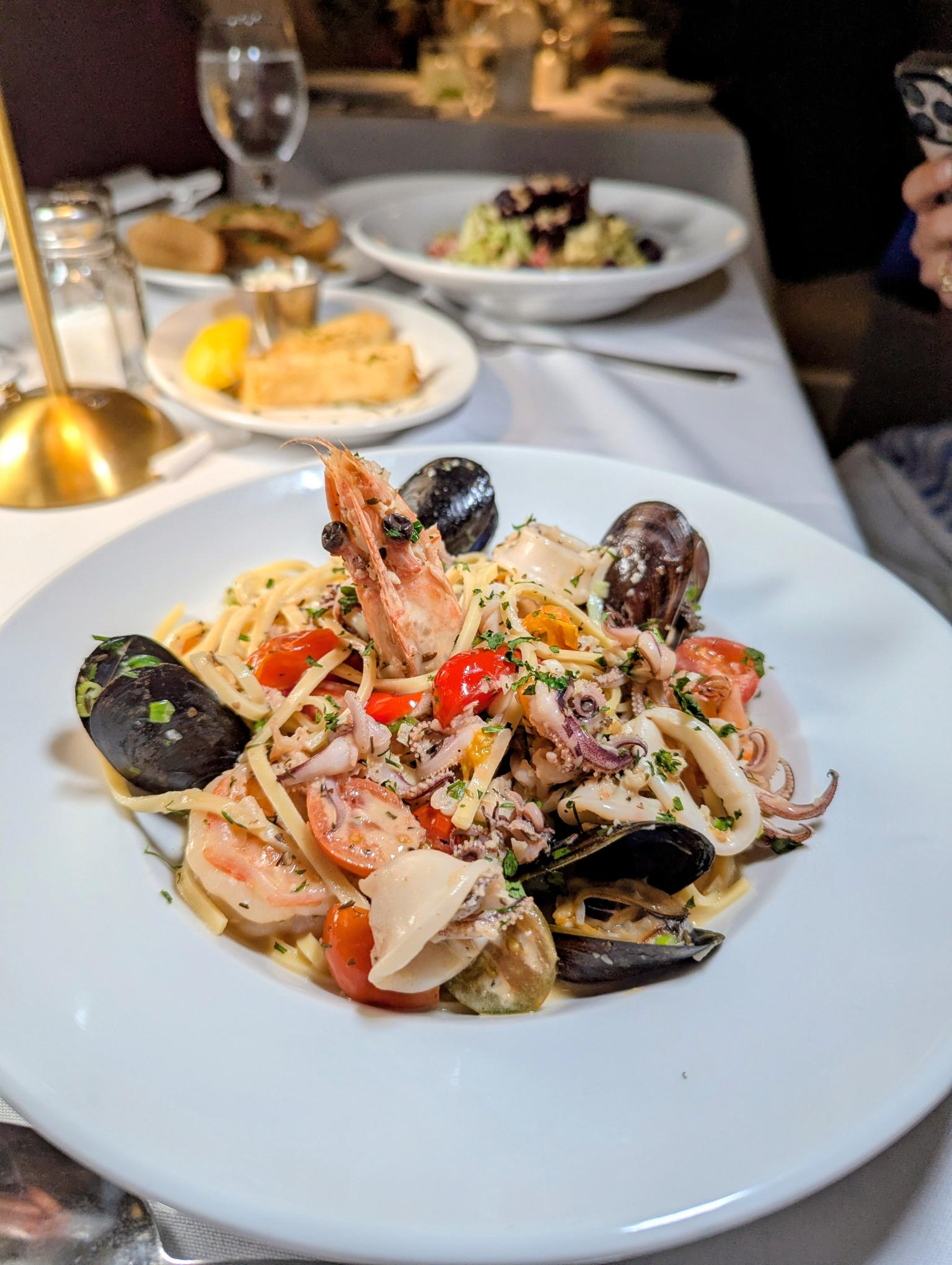 At a recent influencer tasting, the standouts were the kind of dishes that make you linger at the table—herb-crusted halloumi sticks you’ll want “just one more” of, paper-thin zucchini chips fried to golden crispness, and mains of golden sea bream, seafood pasta replete with shrimp, mussels, and calamari, and Greek-style lamb chops. And it’s not just the food: the energy here is what makes dining in Greece unforgettable—warm, generous, and always celebratory.