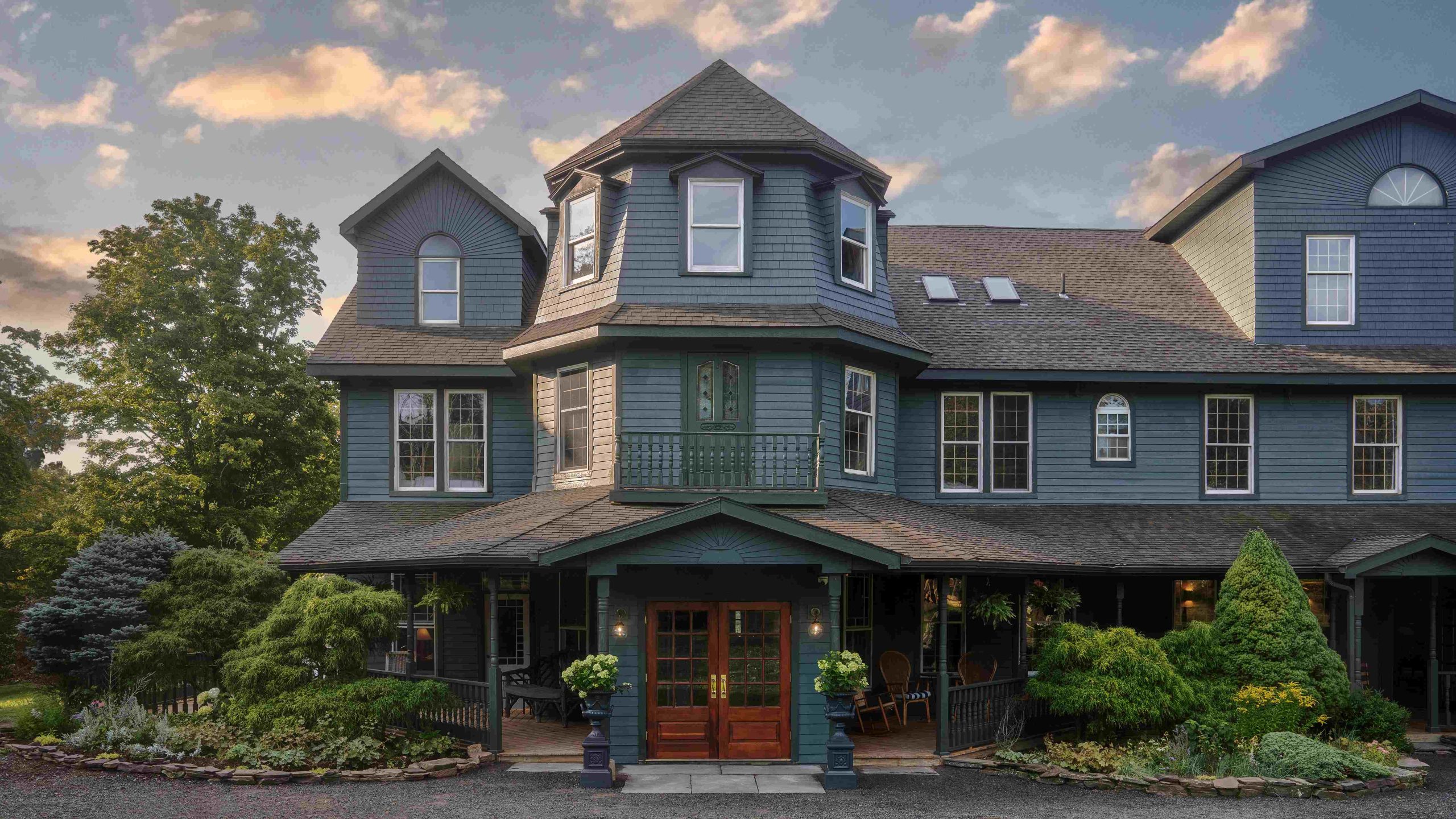 Set on seven wooded acres, guests can linger on wide porches or gather by the outdoor fire pit, cocktail or
