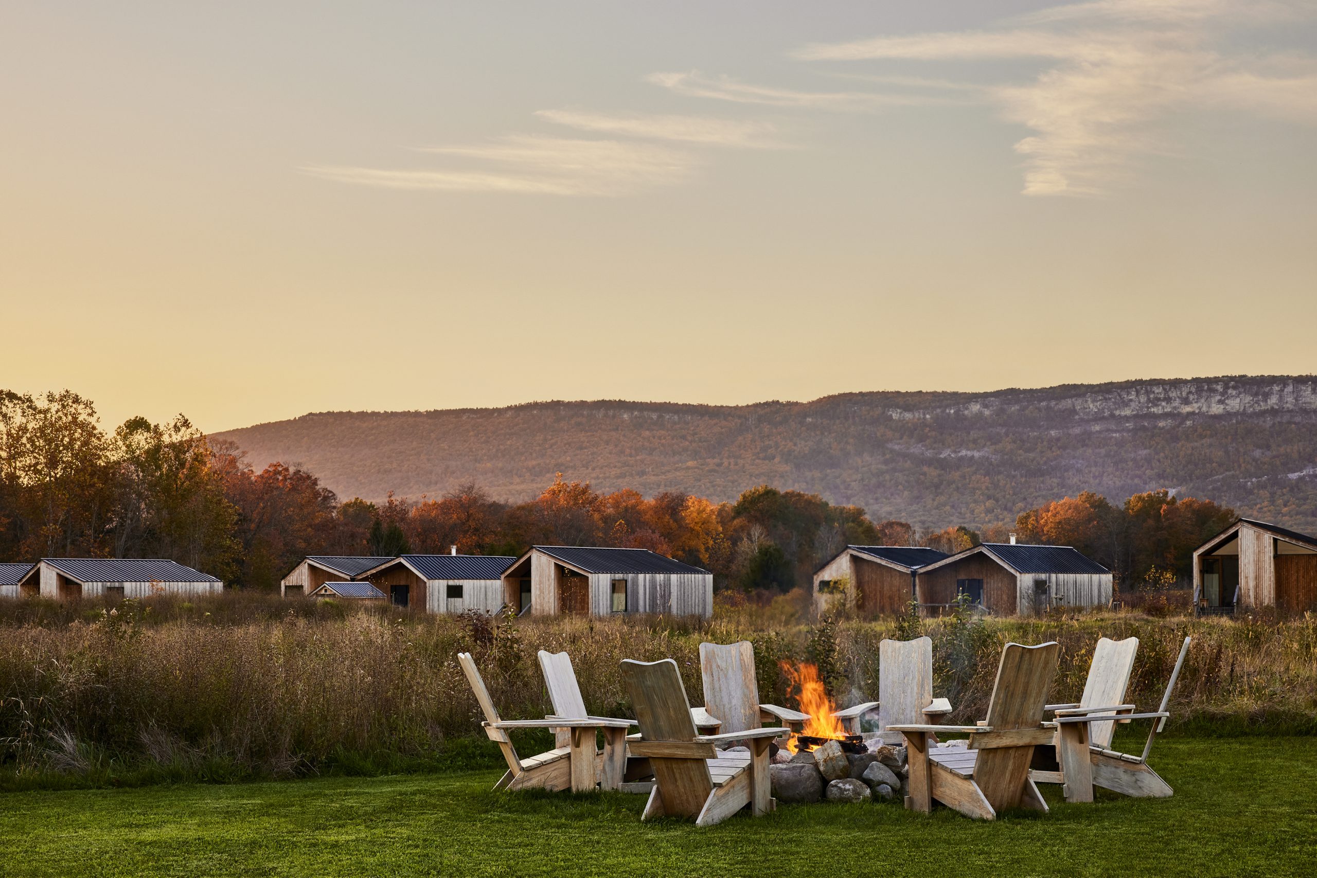 Set on 140 acres of meadows and forest, this Auberge Resort feels worlds away yet remains just 90 minutes from White Plains. Cozy, free-standing cabins with floor-to-ceiling windows frame sweeping views of the Shawangunk Ridge, letting guests wake to a panorama of blazing fall foliage.